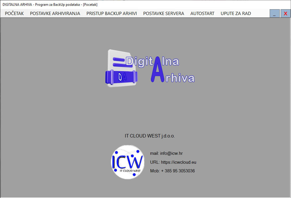 Digitalna arhiva je usluga koja uz našu aplikaciju služi za pohranjivanje vaših važnih podataka, odnosno backup-a na naše poslužitelje.